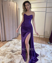 Wholesa Mermaid Strapless Sexy Long Grape formal dresses Bridesmaid Dresses evening gown Prom Dress With Slit