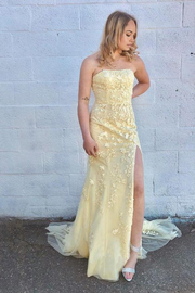 Wholesa Mermaid Strapless Sky Blue Split Prom Dresses Formal Dress With Lace - US 2 / UK 6 / EU 32 / Light Blue