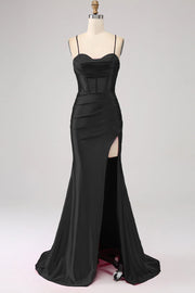Wholesa Mermaid Stunning Spaghetti Straps Corset Prom Dress with Split Front