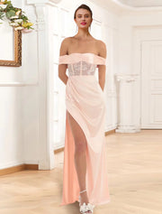 Wholesa Mermaid / Trumpet Prom Dresses Corsets Dress Party Wear Floor Length Sleeveless Off Shoulder Lace with Slit Appliques - US 2 / UK 6 / EU 32