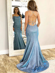 Wholesa Mermaid / Trumpet Prom Dresses Open Back Dress Formal Sweep / Brush Train Sleeveless Strapless Satin Backless with Glitter