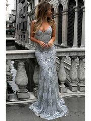 Wholesa Mermaid / Trumpet Prom Dresses Sparkle & Shine Dress Formal Wedding Party Sweep / Brush Train Sleeveless V Neck Lace with Sequin