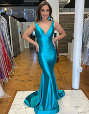 Wholesa Mermaid V-Neck Glitter Satin Backless formal dresses evening gown Prom Dress