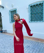 Wholesa Sheath Elegant One Shoulder Red formal dresses Bridesmaid Dresses evening gown Prom Dress
