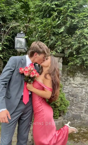 Wholesa Sheath Off The Shoulder Satin Pink Long formal dresses Bridesmaid Dresses evening gown Prom Dress