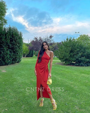 Wholesa Sheath One Sleeve Red Long formal dresses Bridesmaid Dresses evening gown Prom Dress With Split