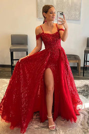 Wholesa Sparkly Detachable Train Sequins Long Prom Dress with Slit
