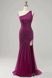 Wholesa Sparkly One Shoulder Sequin Prom Dress with Slit