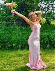 Wholesa Mermaid Spaghetti Straps Satin Pink Long formal dresses Bridesmaid Dresses evening gown Prom Dress