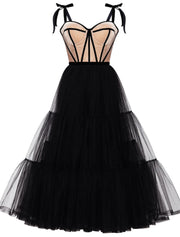 wholesale A-Line Cocktail Dresses Party Dress Cocktail Party Formal Evening Tea Length Sleeveless Sweetheart Wednesday Addams Family Tulle with Pleats Tiered - US 2 / UK 6 / EU 32