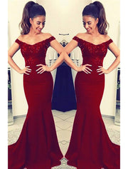 wholesale Mermaid / Trumpet Prom Dresses Sexy Dress Formal Prom Court Train Sleeveless Off Shoulder Stretch Fabric V Back with Beading Appliques