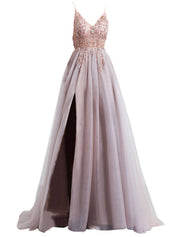 wholesale pink dress bride wedding toast dress dinner annual meeting sling light yarn catwalk high slit wedding evening dress - US 2 / UK 6 / EU 32