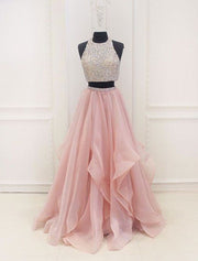 wholesale Two Piece Ball Gown Prom Dresses Sparkle & Shine Dress Party Wear Prom Floor Length Sleeveless Halter Neck Organza with Sequin