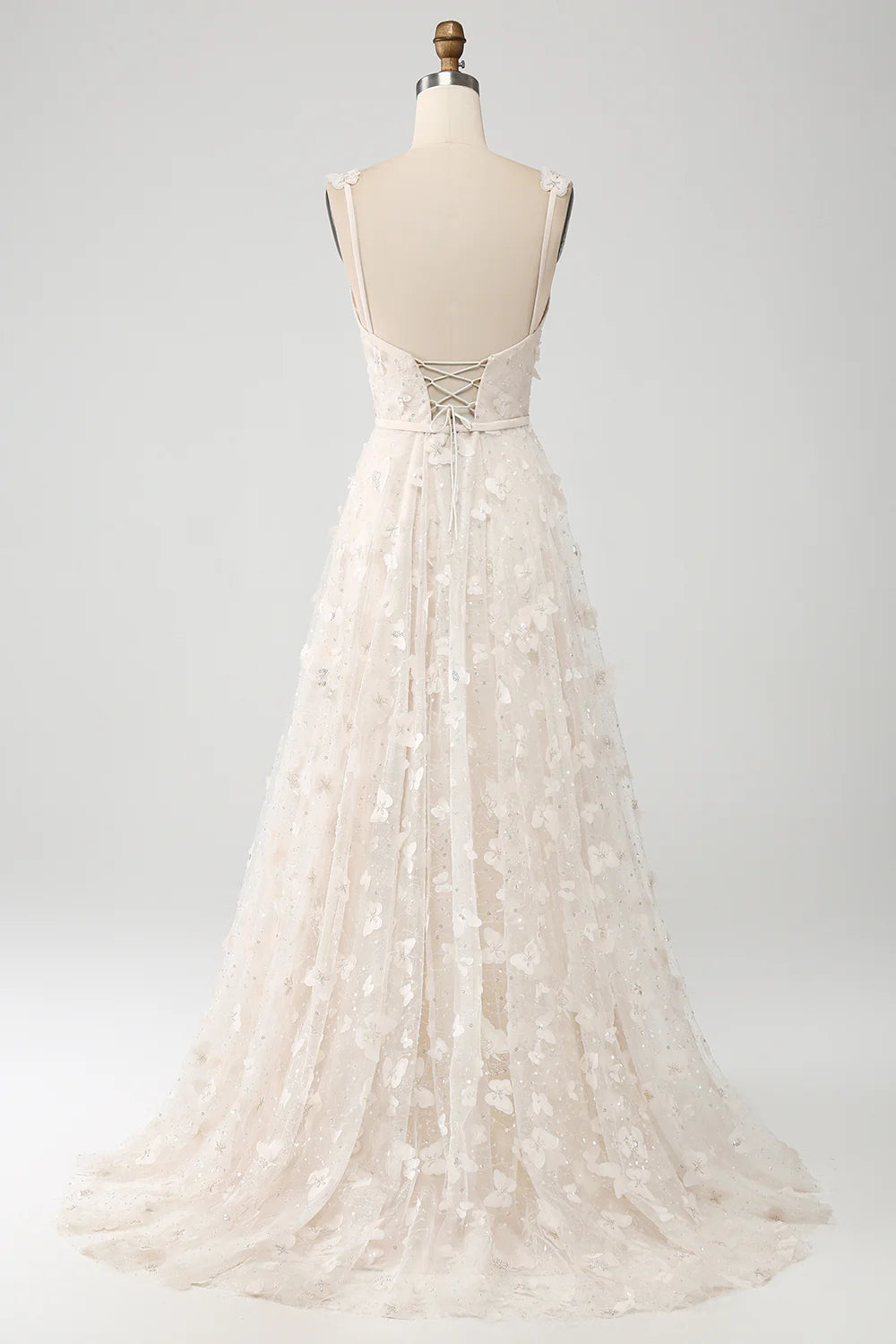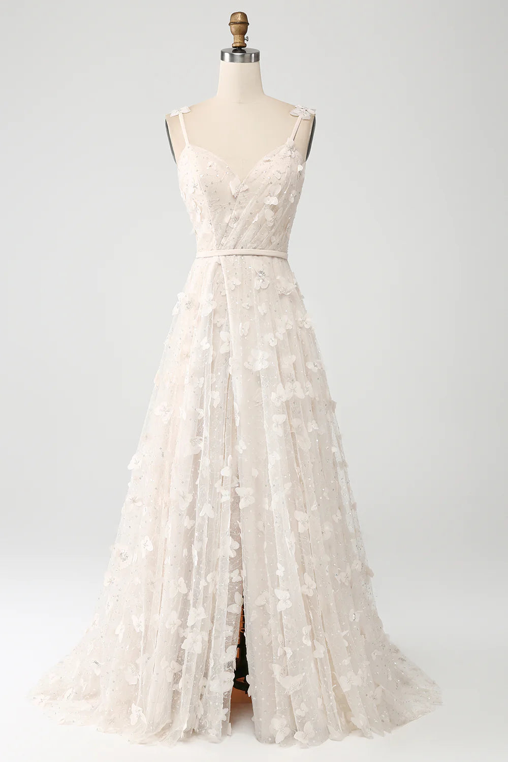 Wholesa A Line Spaghetti Straps Appliques Long Wdding Dress with Slit - US 2 / UK 6 / EU 32