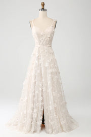 Wholesa A Line Spaghetti Straps Appliques Long Wdding Dress with Slit