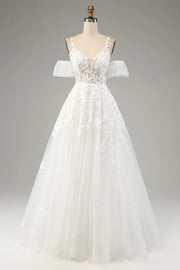 Wholesa A-Line Tulle Spaghetti Straps Wedding Dress with Appliques