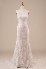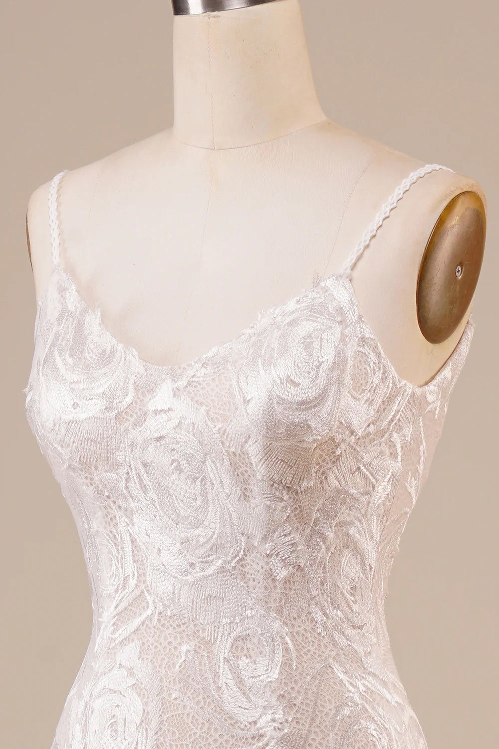 Wholesa Backless Lace Wedding Dress with Sweep Train
