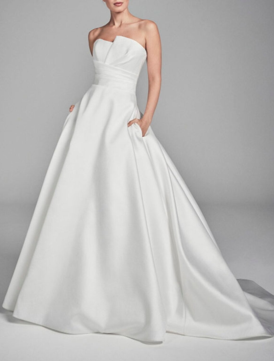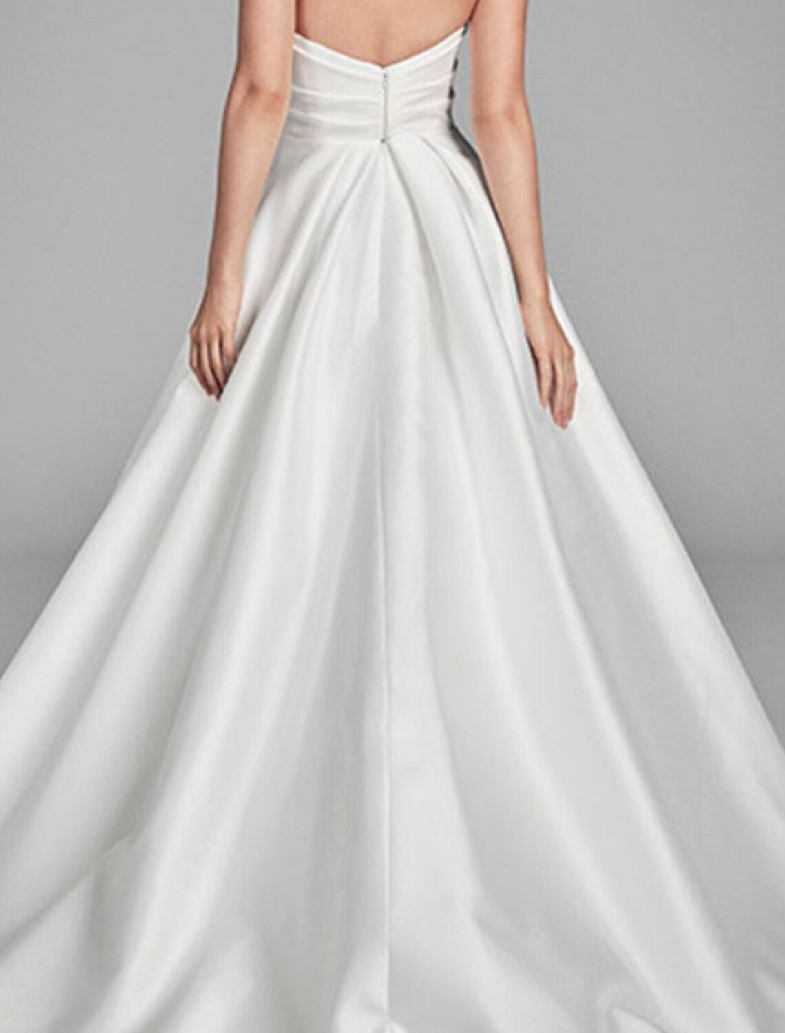Wholesa Engagement Casual Wedding Dresses A-Line Sweetheart Strapless Sweep / Brush Train Satin Bridal Gowns With Ruched - US 2 / UK 6 / EU 32