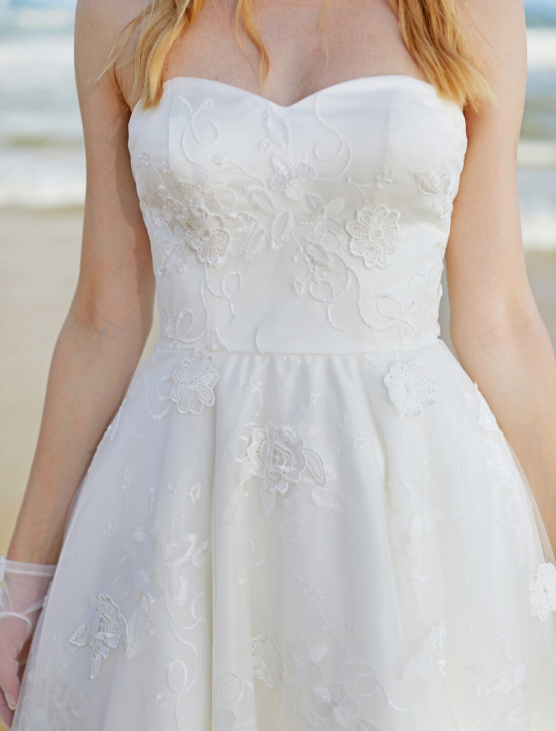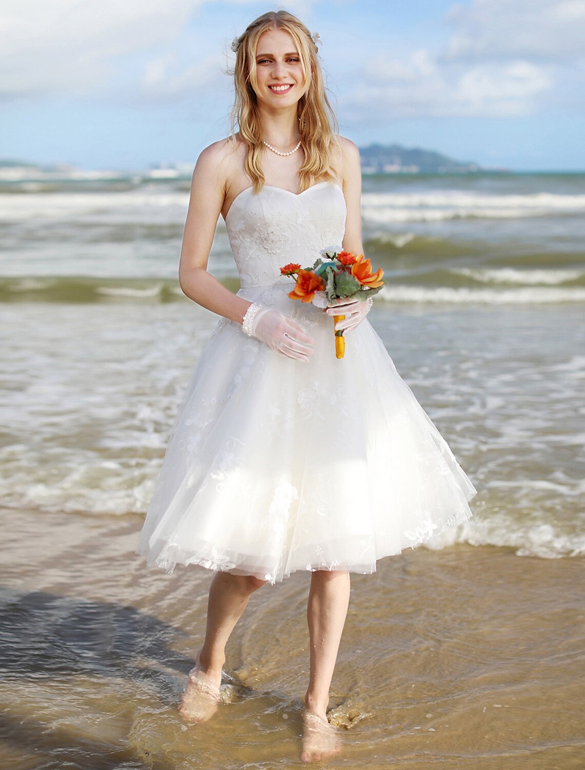 Wholesa Hall Boho Wedding Dresses A-Line Sweetheart Strapless Knee Length Lace Bridal Gowns With Lace - US 2 / UK 6 / EU 32