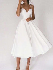 Wholesa Reception Little White Dresses Wedding Dresses A-Line Sweetheart Camisole Spaghetti Strap Tea Length Chiffon Bridal Gowns With Pleats - US 2 / UK 6 / EU 32