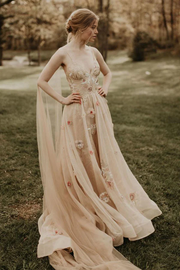 Wholesa A-line 3D Flower Colorful V Neck Tulle Forest Wedding Dresses