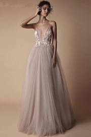 Wholesa A-line Beach Deep V Neck Spaghetti Strap Wedding Dresses With Applique