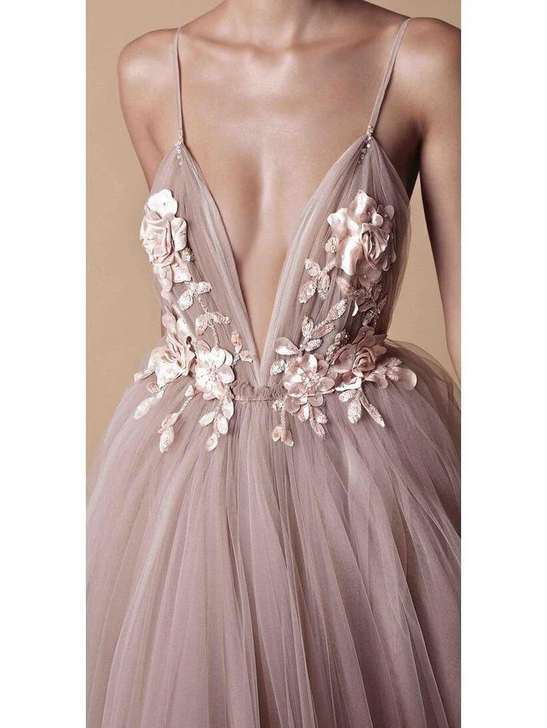Wholesa A-line Beach Deep V Neck Spaghetti Strap Wedding Dresses With Applique - US 2 / UK 6 / EU 32