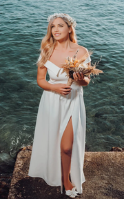 Wholesa A-Line Off-the Shoulder Satin Wedding Dress Sleeveless With Split Front