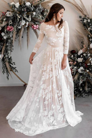 Wholesa A-line Scoop Neck Long Sleeves Lace Bridal Gown Weddding Dress - US 2 / UK 6 / EU 32