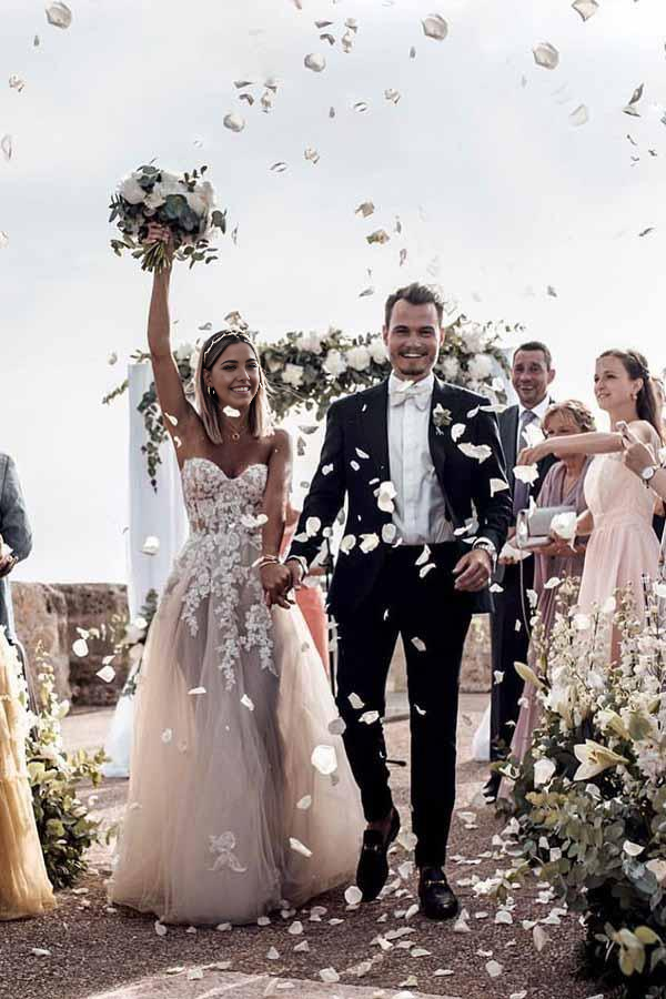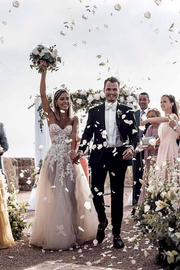 Wholesa A-Line Sweetheart Sleeveless Train Appliqued Tulle Wedding Dress