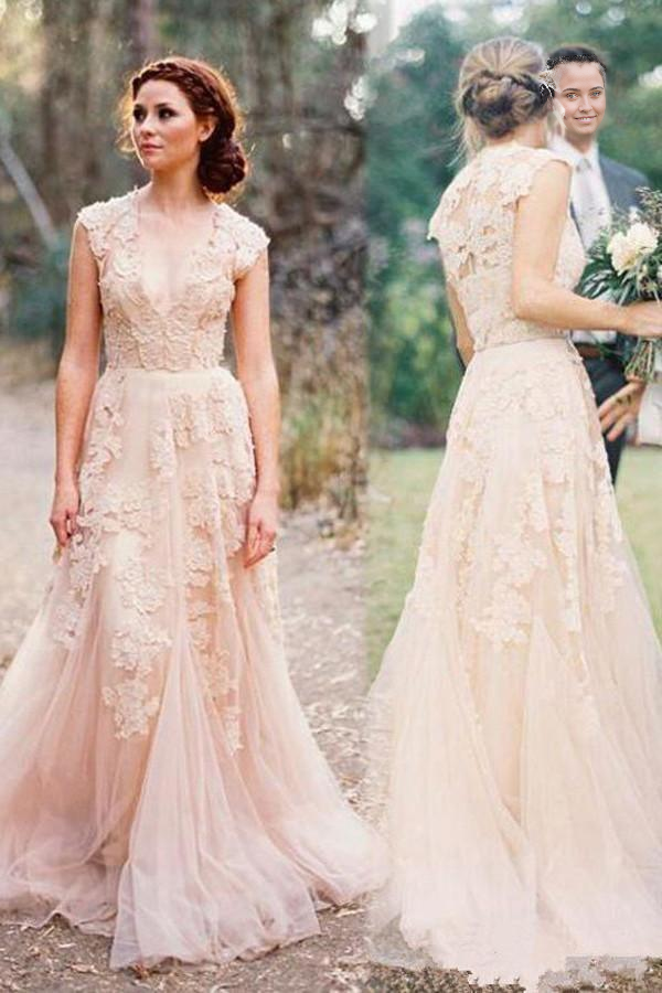 Wholesa A-line V-neck Sleeveless Floor-Length Wedding Dress with Lace