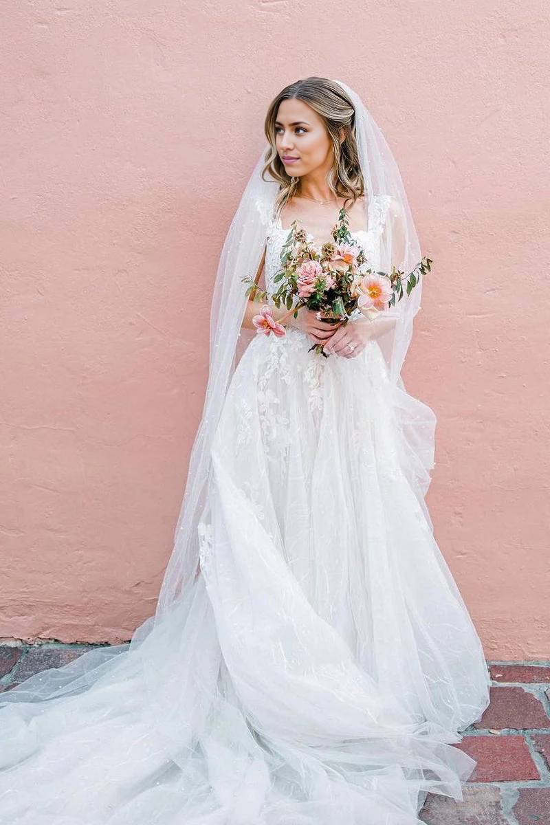 Wholesa A-Line V Neck Tulle Appliques Wedding Dresses