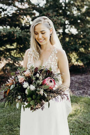 Wholesa Beach A-line Illusion V-Neck Train Sheath Bridal Gown Wedding Dress
