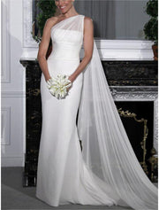 Wholesa Beach Casual Wedding Dresses Mermaid / Trumpet One Shoulder Sleeveless Sweep / Brush Train Chiffon Bridal Gowns With Pleats Ruched - US 2 / UK 6 / EU 32
