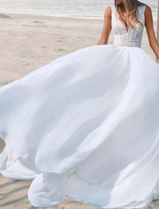 Wholesa Beach Open Back Boho Wedding Dresses A-Line V Neck Sleeveless Floor Length Chiffon Bridal Gowns - US 2 / UK 6 / EU 32