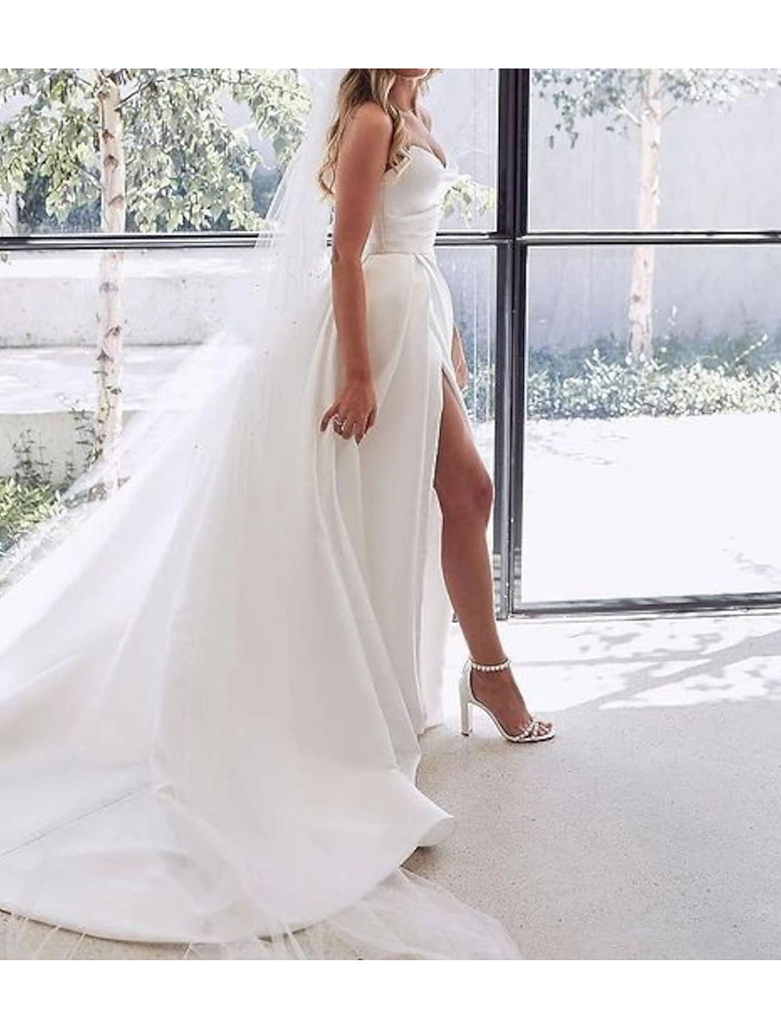 Wholesa Engagement Sexy Wedding Dresses A-Line Sweetheart Strapless Court Train Satin Bridal Gowns With Split Front - US 2 / UK 6 / EU 32