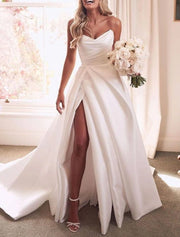 Wholesa Engagement Sexy Wedding Dresses A-Line Sweetheart Strapless Court Train Satin Bridal Gowns With Split Front