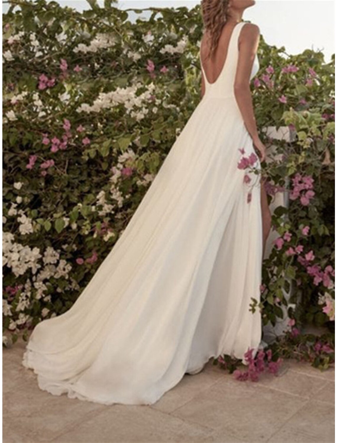 Wholesa Hall Casual Wedding Dresses A-Line Scoop Neck Sleeveless Floor Length Chiffon Bridal Gowns With Split Front - US 2 / UK 6 / EU 32