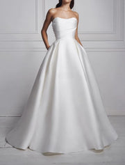 Wholesa Hall Casual Wedding Dresses A-Line Sweetheart Strapless Sweep / Brush Train Satin Bridal Gowns
