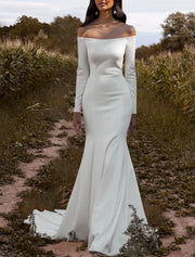 Wholesa Hall Casual Wedding Dresses Mermaid / Trumpet Off Shoulder Long Sleeve Court Train Stretch Fabric Bridal Gowns With Solid Color