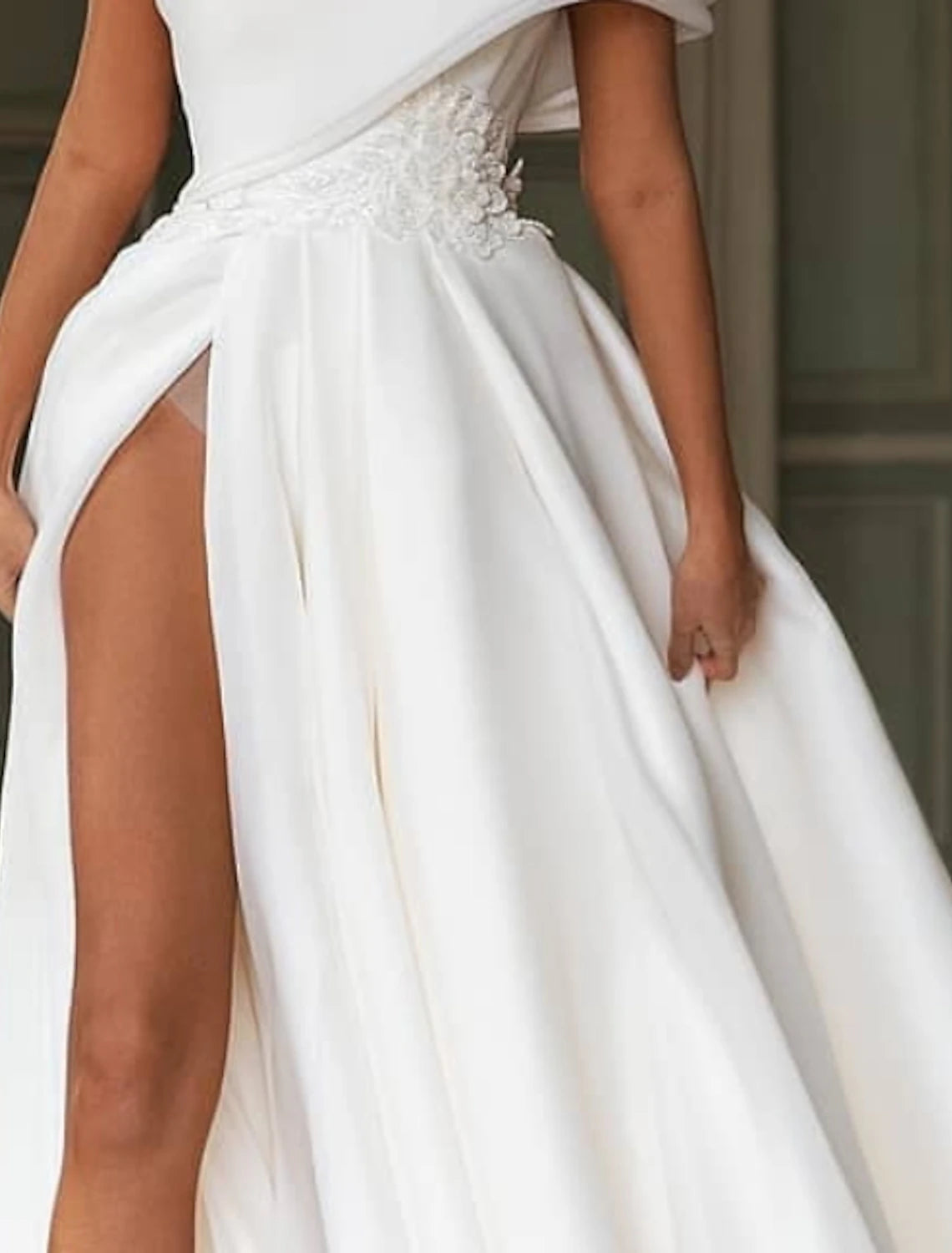 Wholesa Hall Sexy Wedding Dresses A-Line One Shoulder Cap Sleeve Court Train Organza Bridal Gowns With Appliques Split Front - US 2 / UK 6 / EU 32