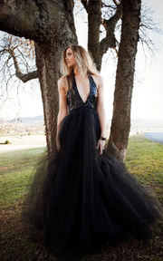 Wholesa Halter Backless Sexy Tulle Sleeveless Wedding Dress with Sequins - US 2 / UK 6 / EU 32