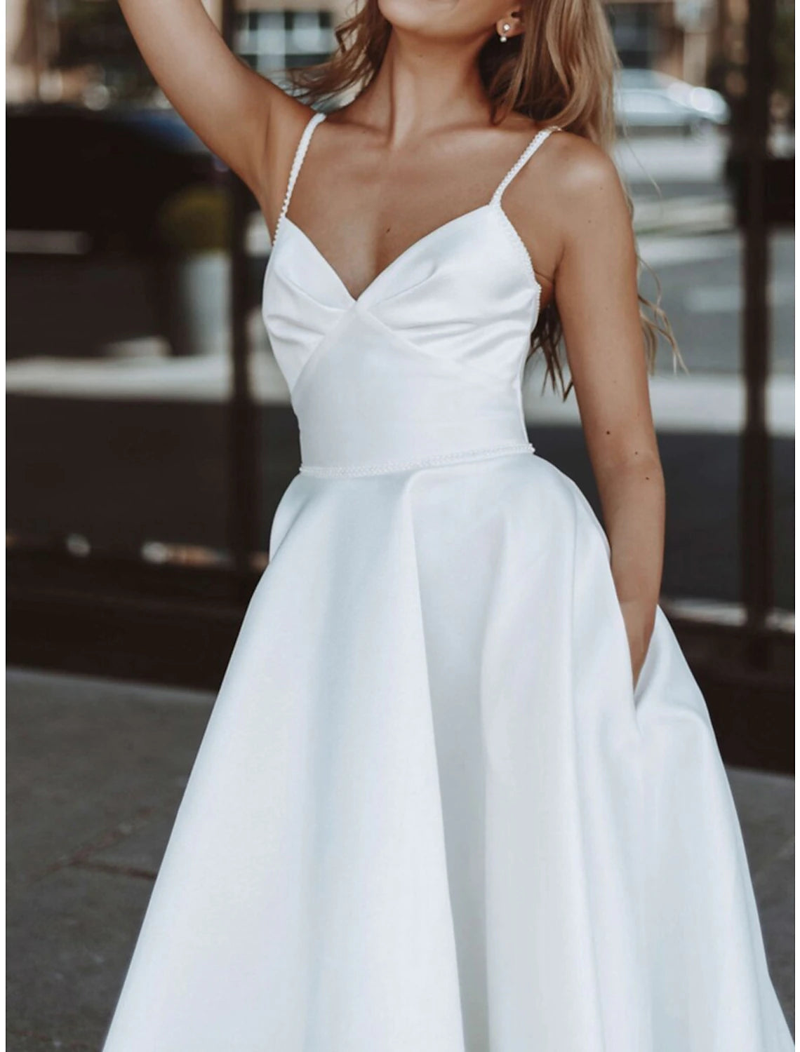Wholesa Reception Simple Wedding Dresses Wedding Dresses A-Line V Neck Long Sleeve Tea Length Chiffon Bridal Gowns With Pleats