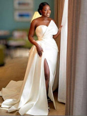 Wholesa Sheath/Column Satin Ruched Sweetheart Sleeveless Sweep/Brush Train Wedding Dresses