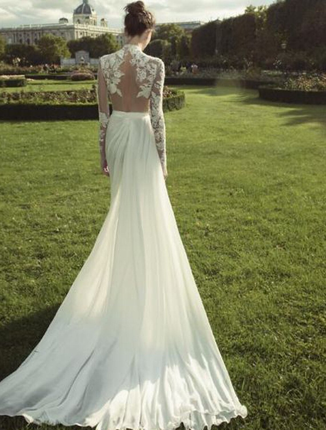 wholesale Beach Wedding Dresses A-Line High Neck Long Sleeve Court Train Chiffon Bridal Gowns With 2023 Summer Wedding Party, Women's - US 2 / UK 6 / EU 32