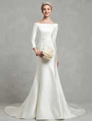 wholesale Casual Fall Wedding Dresses Mermaid / Trumpet Off Shoulder 3/4 Length Sleeve Chapel Train Satin Bridal Gowns With Pleats Summer Wedding Party - US 2 / UK 6 / EU 32