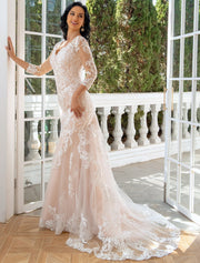 wholesale  Engagement Formal Fall Wedding Dresses Mermaid / Trumpet Sweetheart Long Sleeve Sweep / Brush Train Lace Bridal Gowns With Appliques