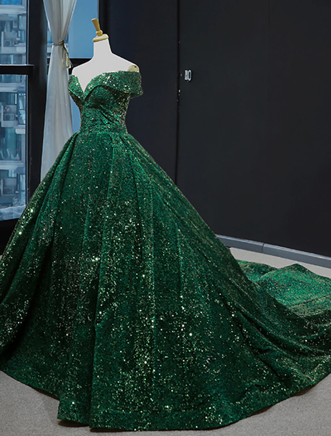 wholesale Reception Wedding Dresses Ball Gown Off Shoulder Short Sleeve Court Train Lace Bridal Gowns With Pleats Sequin - US 2 / UK 6 / EU 32