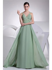 Wholesa A-Line Evening Gown Sparkle Dress Formal Evening Floor Length Sleeveless Spaghetti Strap Chiffon with Beading