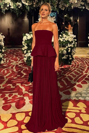 This dress is made of crisp yet soft fabric. The strapless design elegantly reveals the lines of the shoulders and neck, while the lotus leaf edge decoration on the waist is three-dimensional and stylish, cleverly cinching the body while adding retro sweet elements. The pleated hem of the lower garment has an excellent sense of sagging, and when walking, it undulates like waves, showing off its atmospheric elegance. Whether it's a high-end banquet, a red carpet event, or a luxurious celebration, it can make you the center of attention, perfectly interpreting the fusion of glamour and elegance, and easily handling various high-end occasions.